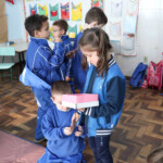 Foi um momento de interação e de oportunidade para as crianças entrarem em contato com outros grupos sociais, com pontos de vista diferentes sobre histórias já conhecidas, respeitando diferentes pontos de vista, e favorecendo a constituição de sujeitos sensíveis, pensantes e sociais.