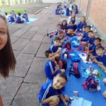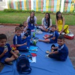 Quem também teve recepção especial foram os alunos que fazem parte do nosso turno Diversificado, que foram recebidos pelas monitoras com brincadeiras no pátio, seguidos por um piquenique com todas as turmas do turno.
